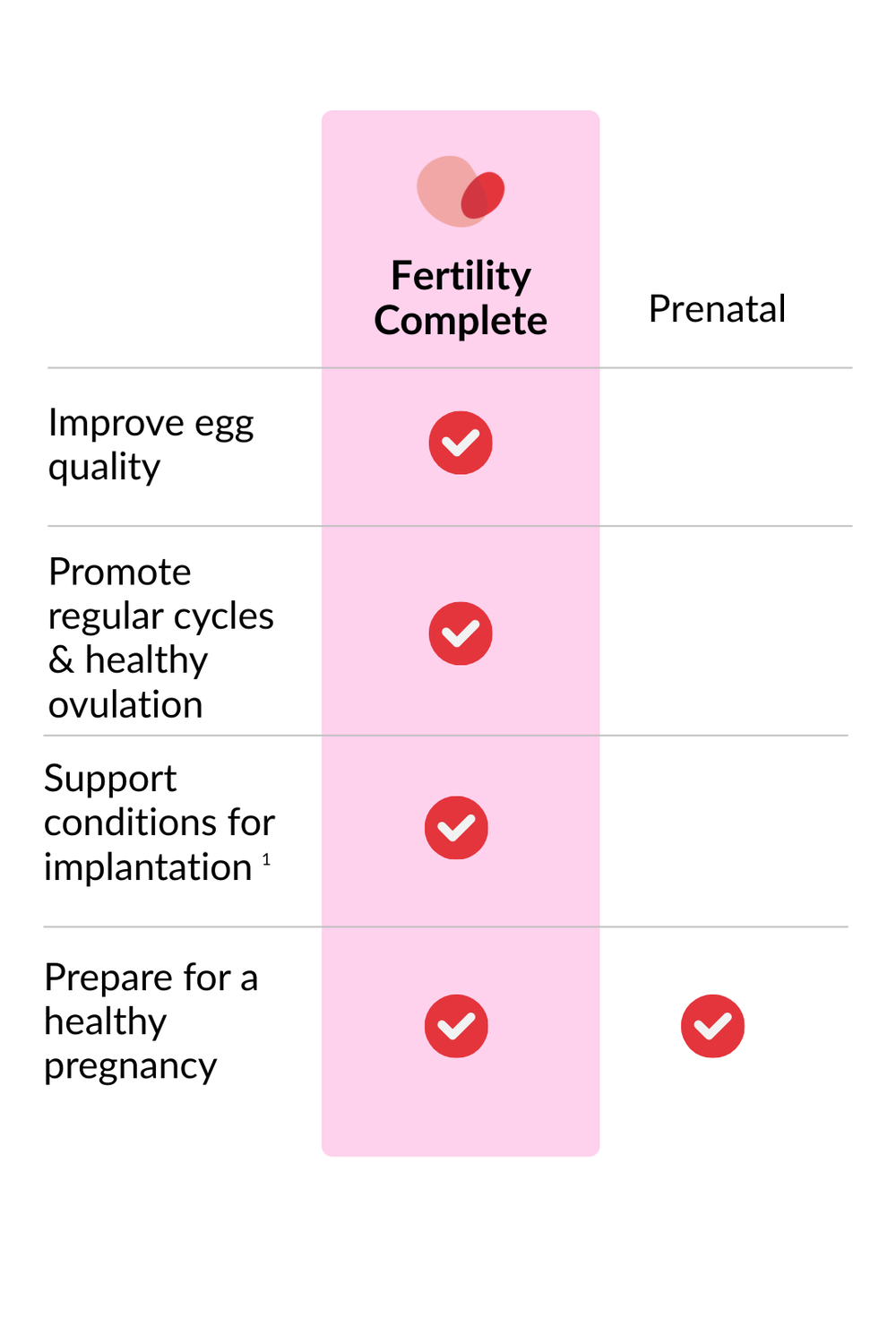 Fertility Complete supplements can be taken during the IVF process to help provide essential nutrients that support egg quality and thickness of the uterine lining¹, which are essential for a successful pregnancy.